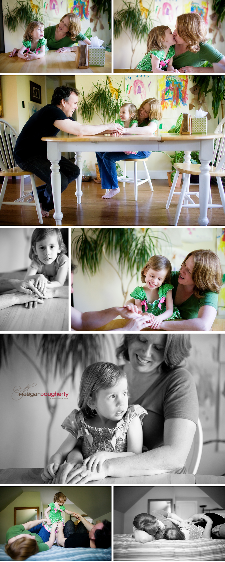 Maegan, I am blessed to be close friends with the above family, knowing and enjoying each member for their specials gifts and for the beauty of who they each are. And let me say, I am so impressed with your ability! You have TRULY captured their spirit as a family and the many moods and amazing delight of the little one. It is just like sitting in their home with them! WELL DONE! Wonderful photos!
